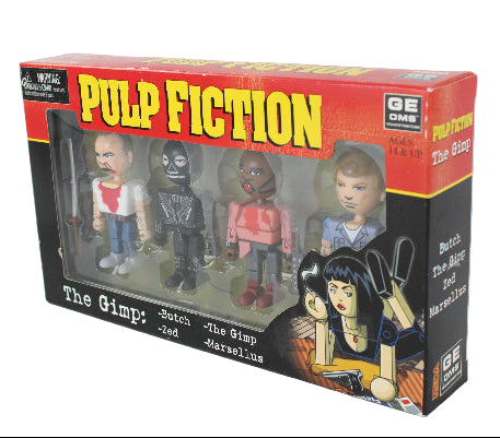 Bring home a piece of Tarantino history with this rare 2004 NECA Pulp Fiction action figure collection featuring The Gimp, Butch, Zed, and Marsellus Wallace. Each figure is new in box (NIB) and meticulously crafted with authentic movie-accurate detail.