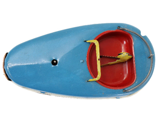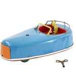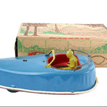 The 10-1/4" long vehicle is in very good condition with the wind-up mechanism working well when tested. There is some minor denting on the tin near both sides of the driver's compartment.