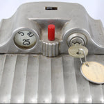 The key to the machine is enclosed. We have not tested this item for working condition, and the attached electric cord should be replaced prior to plugging in the unit.